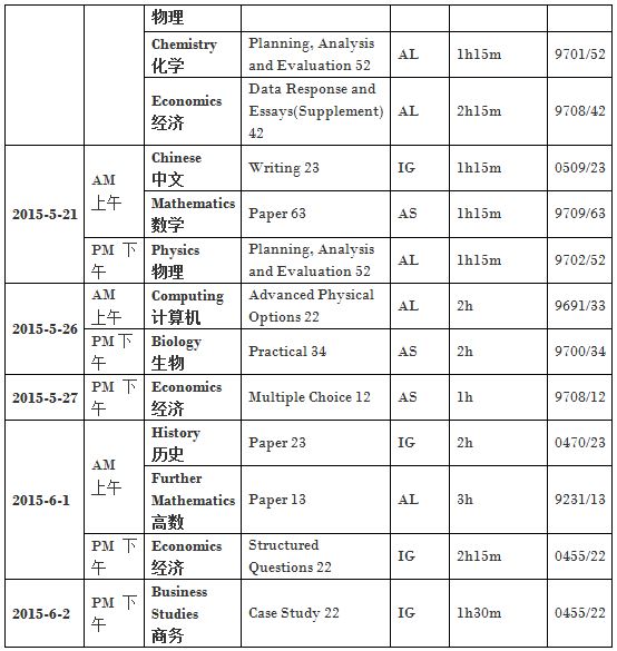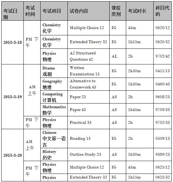 A-Level 考试每年举行两次,上半年在5-6月份,8月公布成绩,下半年在10-11月,成绩在次年的2月公布。小编为各位考生整理了2015年A-Level考试时间安排,主要是CIE考试局在今年5、6月份各科目考试的时间。具体信息还是以Alevel官网和学校所发的通知为准。