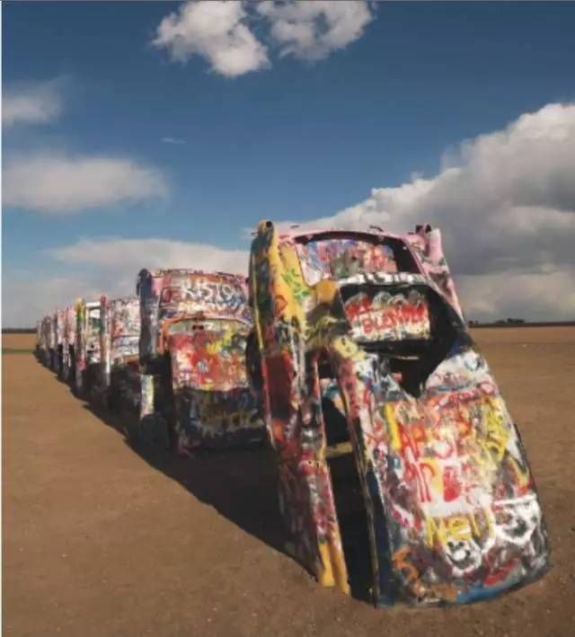 凯迪拉克牧场位于阿马里洛西部,是一个十分有标志性的公开艺术作品。1974年,一个名叫蚂蚁农庄的艺术群体的成员,建筑师奇普‧罗德和道格‧米歇尔斯与艺术生哈德森‧马奎兹将10台卡迪拉克汽车倒插在地上,车头以及一半车身被埋在土里,艺术作品充分展现1949至1963年期间凯迪拉克车的一系列改革,其倾斜角度与埃及的吉萨大金字塔一致。