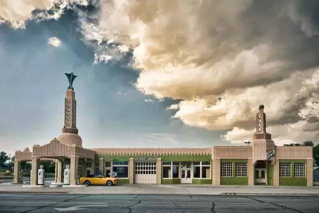 66号公路经过的路边,一座装修风格充满艺术气息的建筑就是著名的Tower Station and U-Drop Inn 咖啡厅。昔日繁华的服务站点已经演变成了游客访问中心。