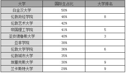 (2) 2016年12月,英国《泰晤士报》发布一组数据,英国国际学生比例最高的前10所学校,其中有6所是排名前十的大学。中国考生想到英国读一个好大学也不容易,竞争激烈啊。