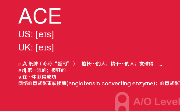a-level词汇量受到的关注越来越高,很多家长担心a-level考试培训费用,a-level考试录取竞争会不会越来越激烈?这些问题在课窝a/o-level考试网小编都会给大家带来详细介绍,今天a/o-level考试网小编给大家带来的是在a-level考试中的重点词汇ACE的详细介绍。如果您想了解alevel学校条件,alevel中文试题,爱德思alevel,英国a水准等关于a-level考试的相关资讯,请继续浏览并关注课窝a/o-level考试网。