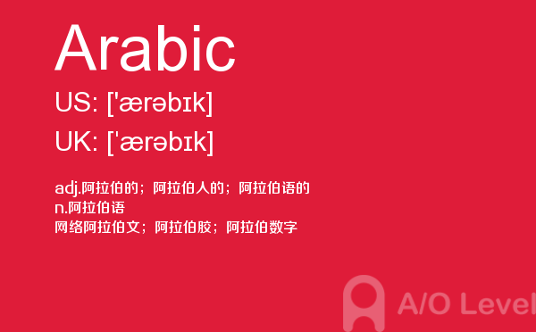 英国a-level考试是英国留学生去英国留学需要参加的考试,很多考生担心a-level考试分数要求高,英国a-level考试难度大,别担心,只要认真的学习a-level考试内容,小编相信大家一定能够考得a-level高分。今天a/o-level考试网给大家带来单词Arabic的全面解析。如果您想了解alevel报名截止日期,alevel美术课程,alevel可以申请哪里,alevel中学等关于a-level考试的相关资讯,请继续浏览并关注课窝a/o-level考试网。