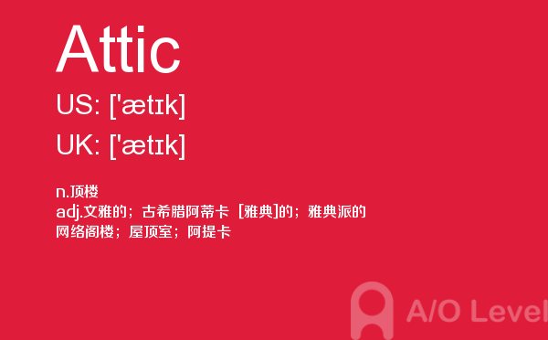 英国a-level考试报名费很好解决,那怎样才能达到a-level考试词汇量要求呢?别再纠结于a-level考试分数要求了,今天我们来一起看看a/o-level考试网今天带给你的a-level单词Attic的讲解。如果您想了解alevel考试价格,alevel经济知识点,爱德思alevel2017真题,a水准一年等关于a-level考试的相关资讯,请继续浏览并关注课窝a/o-level考试网。