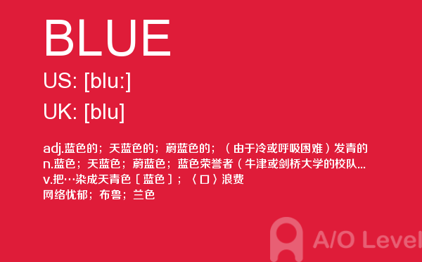 1.蓝,湛蓝的,蔚蓝色的;碧蓝如洗;晴空万里