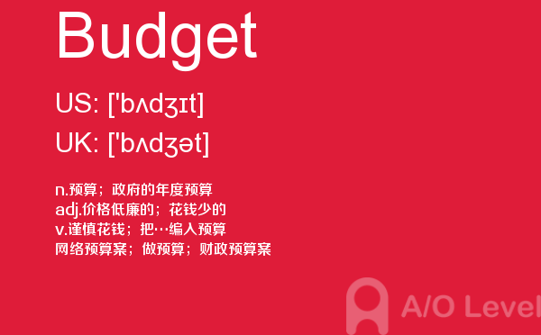 虽然英国a-level院校招生官常把“成绩不是决定录取与否的唯一因素”挂在嘴边,但不得不承认,a-level分数是学生优秀与否的有力证据,取得a-level成绩高分是肯定是优先考虑的。放松一下,先跟着a/o-level考试网来看看今天小编带来的是a-level单词Budget的介绍。如果您想了解考alevel有年龄限制吗,alevel课程难吗,新加坡最好的a水准预科学校,上海alevel辅导等关于a-level考试的相关资讯,请继续浏览并关注课窝a/o-level考试网。