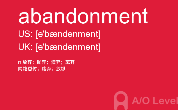 英国A-level考试报名费很好解决,那怎样才能达到A-level考试词汇量要求呢?别再纠结于A-level考试分数要求了,今天我们来一起看看A/O-level考试网今天带给你的A-level单词abandonment的讲解。如果您想了解alevel考试登记,南京alevel培训,alevel课程如何升大学,alevel是什么等关于A-level考试的相关资讯,请继续浏览并关注课窝A/O-level考试网。