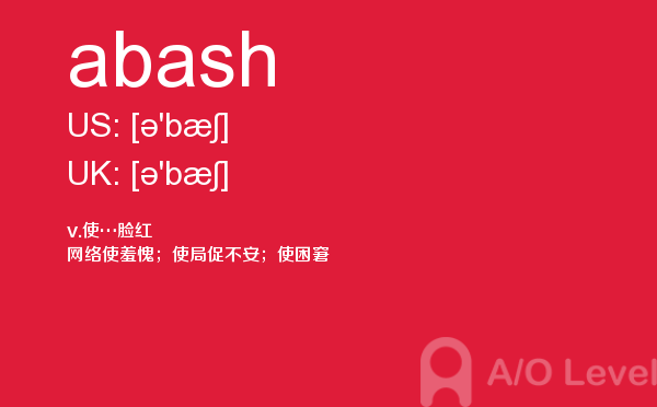 今天课窝A/O-level考试网小编给大家带来alevel考试至关重要的内容A-level单词abash的详细介绍。希望大家能够认真的阅读,在备考A-level中会用到,关于A-level考试时间,alevel考试费用等相关问题,可以关注课窝A/O-level考试网。如果您想了解大连alevel课程,美国有alevel课程吗,alevel培训哪家好,alevel能不能代替sat等关于A-level考试的相关资讯,请继续浏览并关注课窝A/O-level考试网。
