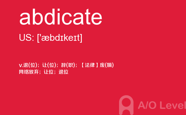 现在分词:abdicating 过去式:abdicated 第三人称单数:abdicates