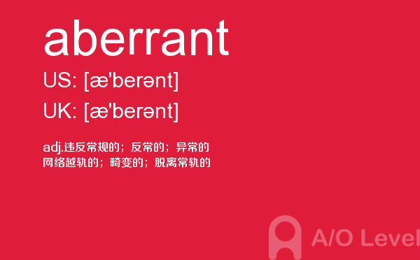 英国留学对于留学成绩的比拼越来越激烈,申请英国院校留学的一大指标A-level考试分数要求也水涨船高.虽然成绩只是申请的一部分,但不得不说,好看的英国A-level成绩是学生是否优秀的证据。放松一下跟着A/O-level考试网来学习一下A-level考试词汇aberrant的应用。如果您想了解alevel考试局比较,alevel课程物理,alevel真题搜索,alevel成绩网上查询等关于A-level考试的相关资讯,请继续浏览并关注课窝A/O-level考试网。