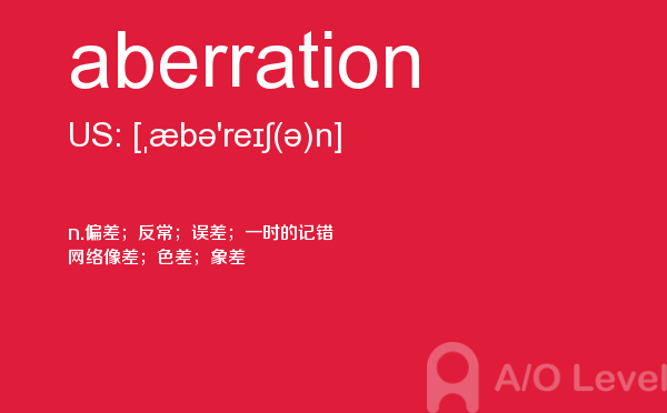 在A-level备考的过程中,想要冲刺到A-level写作的高分,相信大家都应该会知道,除了需要掌握A-level写作的一些技巧之外,优化文章中的词汇和句型也是冲刺高分的关键所在。也就是说,只有充分掌握了语法知识,才能让我们的的文章更为丰富形象。除了A-level写作,在A-level其他方面同学们也需要了解,下面课窝A/O-level考试网小编给大家带来A-level单词aberration的介绍。如果您想了解英国alevel官网,alevel培训费用,alevel双语教材,alevel数学真题下载等关于A-level考试的相关资讯,请继续浏览并关注课窝A/O-level考试网。