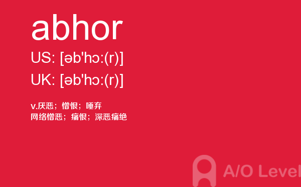 A-level课程包含70多门供学生选择,一般学生选择3至4门来学,中国学生在数学学科上有很大的优势,一般学生都会选择基础数学。学生选择课程时,一般要考虑现在自己的优势科目和将来的发展方向,即你想选择哪个大学、什么专业,从而根据他们的要求有的放矢地选课。关于alevel选课后续会详细介绍,下面带来A-level考试词汇abhor的详细介绍。如果您想了解bc和alevel哪个好,国内知名alevel培训,alevel课程物理,a水准考试要求等关于A-level考试的相关资讯,请继续浏览并关注课窝A/O-level考试网。
