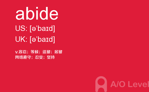 英国、加拿大、爱尔兰、澳大利亚、新西兰、新加坡等英语国家没有统一的大学入学标准,虽然它们都认可A-Level证书,但是各所大学、各个专业对学生学过哪几门A-Level课程以及成绩都有不同的要求。所以怎样选择课程并没有一个唯一的答案。对于如何选课的问题要根据具体情况而定。这些在你的A-level考试中都不是重要的,重要的是A-level成绩,A-level成绩取决于A-level词汇量,那么今天小编给大家带来A-level考试重点词汇abide的全面解析。如果您想了解a水准考试h1h2,alevel辅导上海,alevel公立学校,a水准考试预科班等关于A-level考试的相关资讯,请继续浏览并关注课窝A/O-level考试网。