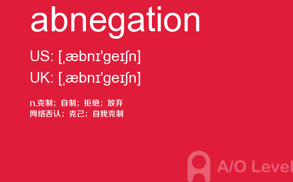你知道考上A-level考试如何报名吗?最近很多人询问英国A-level考试有多难?到底要不要参加A-level考试培训?抛弃这些,A/O-level考试网老师告诉你,A-level单词最重要,今天带你学习abnegation怎么用,希望你认真的学习。如果您想了解英国alevel官网,alevel学校考试难度,alevel数学内容,新加坡a水准考试局等关于A-level考试的相关资讯,请继续浏览并关注课窝A/O-level考试网。