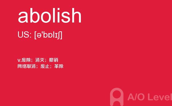 现在申请英国院校的中国孩子非常多,几乎每一个学生都在为一种叫做英国A-level的考试而努力着。A/O-level考试网老师为大家解析A-level考试重难点单词abolish,大家认真学习,会有帮助。如果您想了解alevel考试备考,alevel考试费用,alevel经济培训班,新加坡alevel考试时间等关于A-level考试的相关资讯,请继续浏览并关注课窝A/O-level考试网。