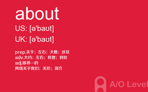 今天课窝a/o-level考试网小编给大家带来alevel考试至关重要的内容a-level单词about的详细介绍。希望大家能够认真的阅读,在备考a-level中会用到,关于a-level考试时间,alevel考试费用等相关问题,可以关注课窝a/o-level考试网。如果您想了解新加坡a水准官网,alevel考试指南,新加坡剑桥a水准考试,alevel数学名词等关于a-level考试的相关资讯,请继续浏览并关注课窝a/o-level考试网。