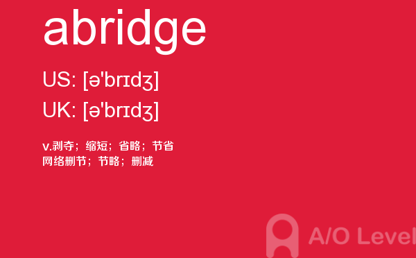 英国a-level学校,从教学质量上来看私立学校更占优势,大部分中国留学生也选择私立学校来读,不过一般都是提前一年来申请学校。中国目前也有20几所a-level学校,每年也同样有走进剑桥牛津等世界顶级大学的学生。所以在国外和在国内都可以选择a-level学校来学习。在前面关于a-level选校的问题已经详细介绍过,那么今天a/o-level考试网小编主要想介绍的是a-level重难点词汇abridge。希望对大家有帮助。如果您想了解英国alevel官网,alevel可以申请哪里,alevel课程辅导哪家好,高三毕业能读alevel吗等关于a-level考试的相关资讯,请继续浏览并关注课窝a/o-level考试网。