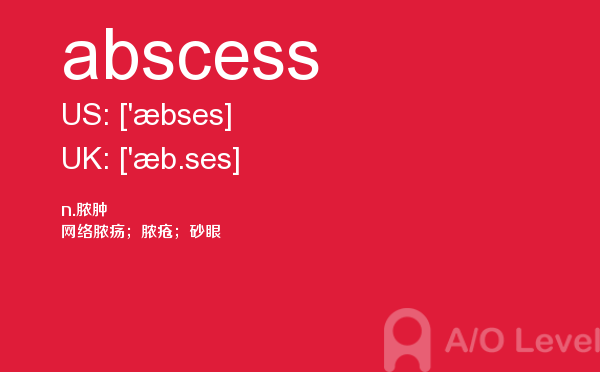 英国a-level考试是英国留学生去英国留学需要参加的考试,很多考生担心a-level考试分数要求高,英国a-level考试难度大,别担心,只要认真的学习a-level考试内容,小编相信大家一定能够考得a-level高分。今天a/o-level考试网给大家带来单词abscess的全面解析。如果您想了解alevel数学公式表,alevel申请,alevel学校,英国alevel学校排名等关于a-level考试的相关资讯,请继续浏览并关注课窝a/o-level考试网。