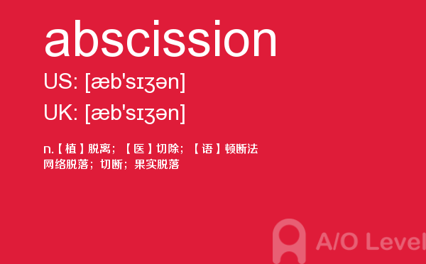 随着英国留学申请竞争的白热化,a-level成绩在学生个人简历中扮演的“入场券”角色,变得越来越重要。然而,在你参加a-level考试培训班前,你首先要对a-level考试有着一定的了解,一起跟着a/o-level考试网来看看小编今天带来a-level单词abscission的详细介绍。如果您想了解alevel考试机经,alevel真题试卷,alevel都有什么课程,alevel课程多久等关于a-level考试的相关资讯,请继续浏览并关注课窝a/o-level考试网。