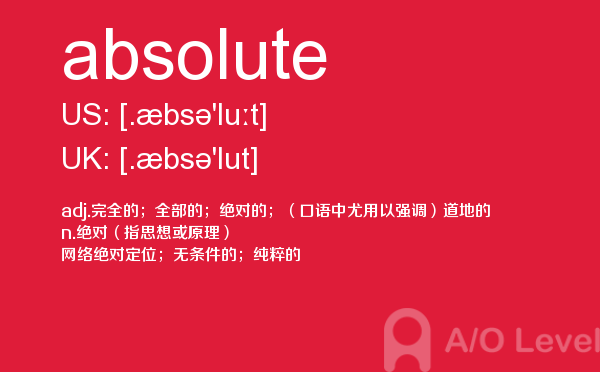 众多周知的英国a-level入学考试是进入英国院校的必经之路,所以我们自然不能小看,建议同学们能够加强a-level考试真题的练习,提前明确英国a-level考试报名的具体信息。为了提高考生们的英国a-level考试成绩,a/o-level考试网小编会每天给大家更新a-level留学资讯和alevel考试资讯,今天带来的是关于a-level考试词汇的单词全解,下面带你学习absolute的用法。如果您想了解alevel国际高中,alevel课程每科评分,alevel考点,alevel化学课程教案等关于a-level考试的相关资讯,请继续浏览并关注课窝a/o-level考试网。