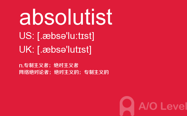 a- level课程一般在中国开设数学、进阶数学(或称高等数学)、物理、计算机学、会计学、商业学、经济学等课程供学生选择。那么关于alevel考生应该选哪些alevel课程呢?以后会给大家详细介绍,今天a/o-level考试网主要给大家全面介绍a-level词汇中的absolutist单词。如果您想了解alevel生物,alevel考试报名时间,考alevel多少钱,alevel阅读技巧等关于a-level考试的相关资讯,请继续浏览并关注课窝a/o-level考试网。