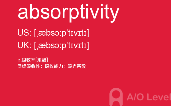 随着英国留学申请竞争的白热化,a-level成绩在学生个人简历中扮演的“入场券”角色,变得越来越重要。然而,在你参加a-level考试培训班前,你首先要对a-level考试有着一定的了解,一起跟着a/o-level考试网来看看小编今天带来a-level单词absorptivity的详细介绍。如果您想了解alevel真题搜索,alevel考场地址,alevel网上报名,alevel经济学大纲等关于a-level考试的相关资讯,请继续浏览并关注课窝a/o-level考试网。
