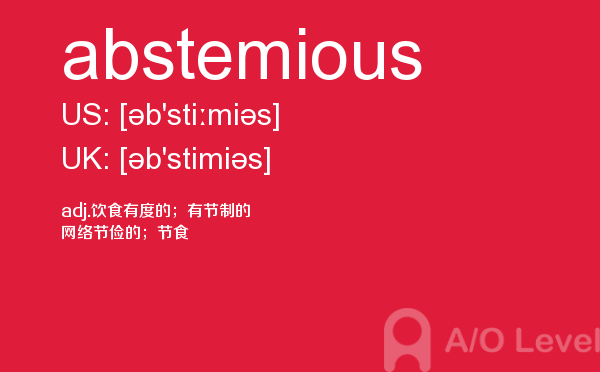 虽然英国a-level院校招生官常把“成绩不是决定录取与否的唯一因素”挂在嘴边,但不得不承认,a-level分数是学生优秀与否的有力证据,取得a-level成绩高分是肯定是优先考虑的。放松一下,先跟着a/o-level考试网来看看今天小编带来的是a-level单词abstemious的介绍。如果您想了解alevel考试考点,alevel经济学答题技巧,剑桥a水准,alevel考试安排等关于a-level考试的相关资讯,请继续浏览并关注课窝a/o-level考试网。