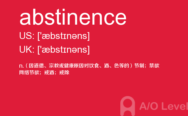 在a-level备考的过程中,想要冲刺到a-level写作的高分,相信大家都应该会知道,除了需要掌握a-level写作的一些技巧之外,优化文章中的词汇和句型也是冲刺高分的关键所在。也就是说,只有充分掌握了语法知识,才能让我们的的文章更为丰富形象。除了a-level写作,在a-level其他方面同学们也需要了解,下面课窝a/o-level考试网小编给大家带来a-level单词abstinence的介绍。如果您想了解alevel考试的考生年龄上限是多少,alevel国际学校,alevel剑桥,alevel物理讲义等关于a-level考试的相关资讯,请继续浏览并关注课窝a/o-level考试网。
