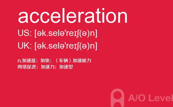 a-level(general certificate of education advanced level ),英国高中课程,是英国全民课程体系,是英国普通中等教育证书考试高级水平课程,也是英国学生的大学入学考试课程。今天alevel考试网小编给大家带来的alevel考试单词acceleration的详细介绍。希望大家能够认真的阅读。如果您想了解港大alevel申请条件,alevel中国大学,alevel成绩申请港大,alevel经济教材电子版等关于a-level考试的相关资讯,请继续浏览并关注课窝a/o-level考试网。