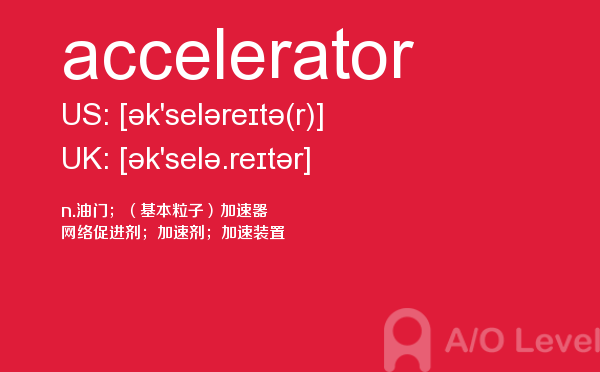 就读于国内学校的学生, 在申请英国学校时需要提交英国a-level考试成绩。很多考生因此英国a-level考试搞得头疼,放松一下,跟着a/o-level考试网来看看英国留学资讯吧!今天课窝a/o-level考试网小编给大家带来a-level考试重点词汇accelerator的全解,对你肯定有帮助。如果您想了解alevel网课,alevel官网,alevel培训费用,alevel化学知识点整理等关于a-level考试的相关资讯,请继续浏览并关注课窝a/o-level考试网。