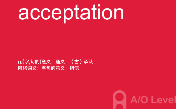 对于a-level考试,我们一再强调要加强a-level考试真题实战,多做英国a-level考试真题。放松一下,跟着a/o-level考试网来积累一下a-level考试中你会用到的单词acceptation,对你的a-level考试会有很大的帮助。如果您想了解爱德思alevel答案,alevel词汇下载,中国alevel考点,自学alevel申请大学等关于a-level考试的相关资讯,请继续浏览并关注课窝a/o-level考试网。