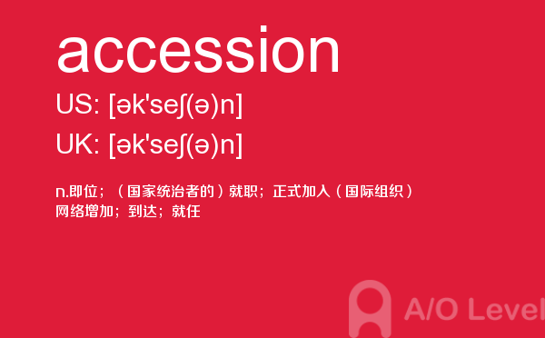 英国高中课程(a-level)的学制为两年:第一年称为as水准,学生通常选择自己最擅长且最有兴趣的3—4门课,通过考试后获得as证书。第二年称为a2水准,学生可选择as水准中优秀的3门课继续学习,通过考试后获得a-level证书。关于a-level学制相信大家肯定有一定的了解,今天alevel考试网想要带大家了解的并不是a-level学制的问题,想要介绍的是a-level重难点单词accession,希望对大家有帮助。如果您想了解经济学alevel拿a难不难,国内知名alevel培训,alevel课程教案,国际学校如何考alevel等关于a-level考试的相关资讯,请继续浏览并关注课窝a/o-level考试网。