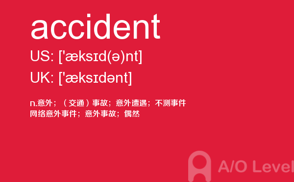 课窝a/o-level考试网上提供了许多信息可以供考生们参考,比如考生需要在此网站报名,打印准考证,或者搜寻与英国a-level考试内容相关的资料等等。考生如果想在短时间内,迅速掌握a-level考试资讯,就需要合理运用此网站的信息。今天带来的是a-level考试词汇之accident的详细介绍。如果您想了解alevel法律,alevel数学考试大纲,alevel课程多久,alevel中文书目等关于a-level考试的相关资讯,请继续浏览并关注课窝a/o-level考试网。