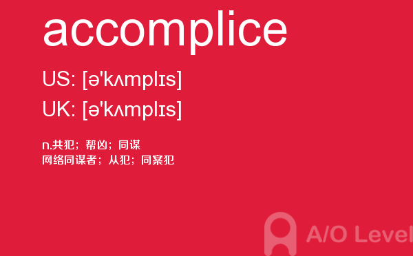 虽然英国a-level院校招生官常把“成绩不是决定录取与否的唯一因素”挂在嘴边,但不得不承认,a-level分数是学生优秀与否的有力证据,取得a-level成绩高分是肯定是优先考虑的。放松一下,先跟着a/o-level考试网来看看今天小编带来的是a-level单词accomplice的介绍。如果您想了解a水准物理专业术语,alevel中文,alevel词汇表,alevel经济学真题等关于a-level考试的相关资讯,请继续浏览并关注课窝a/o-level考试网。
