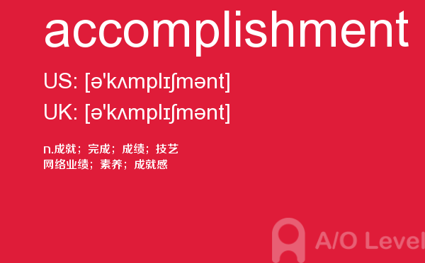 虽然英国a-level院校招生官常把“成绩不是决定录取与否的唯一因素”挂在嘴边,但不得不承认,a-level分数是学生优秀与否的有力证据,取得a-level成绩高分是肯定是优先考虑的。放松一下,先跟着a/o-level考试网来看看今天小编带来的是a-level单词accomplishment的介绍。如果您想了解alevel考试在中国,alevel物理分数线,alevel数学真题下载,alevel学校等关于a-level考试的相关资讯,请继续浏览并关注课窝a/o-level考试网。
