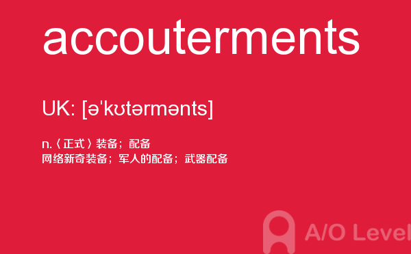 随着英国留学申请竞争的白热化,a-level成绩在学生个人简历中扮演的“入场券”角色,变得越来越重要。然而,在你参加a-level考试培训班前,你首先要对a-level考试有着一定的了解,一起跟着a/o-level考试网来看看小编今天带来a-level单词accouterments的详细介绍。如果您想了解alevel培训哪家好,剑桥alevel课程,新加坡a水准,alevel真题试卷等关于a-level考试的相关资讯,请继续浏览并关注课窝a/o-level考试网。