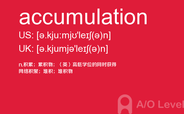 现在申请英国院校的中国孩子非常多,几乎每一个学生都在为一种叫做英国a-level的考试而努力着。a/o-level考试网老师为大家解析a-level考试重难点单词accumulation,大家认真学习,会有帮助。如果您想了解alevel影视表演学什么,alevel培训机构,alevel课程的适用范围,alevel去哪考试在中国等关于a-level考试的相关资讯,请继续浏览并关注课窝a/o-level考试网。