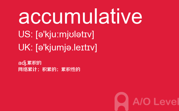 目前,a/olevel逐渐为人所熟知,很多学生都会主动了解alevel考试流程。同时也会抱怨a-level英语题比较难,任务重。那现在我们就放松一下,跟着a/o-level考试网小编来看看a-level考试中要积累的单词accumulative,认真的学习积累。如果您想了解alevel物理真题,如何成为alevel老师,英国读alevel,为什么要考alevel课程等关于a-level考试的相关资讯,请继续浏览并关注课窝a/o-level考试网。