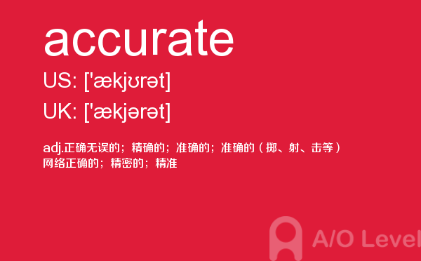英国留学考试a-level考试考什么?a-level考试题型一定要注意积累和总结。课窝a/o-level考试网小编每天会给大家带来a-level考试的相关资讯,今天带来a-level单词accurate的解析,希望大家认真的积累a-level考试词汇。如果您想了解alevel,alevel课程,alevel考试局,alevel数学教材等关于a-level考试的相关资讯,请继续浏览并关注课窝a/o-level考试网。