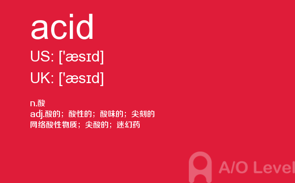 a-level(general certificate of education advanced level ),英国高中课程,是英国全民课程体系,是英国普通中等教育证书考试高级水平课程,也是英国学生的大学入学考试课程。今天alevel考试网小编给大家带来的alevel考试单词acid的详细介绍。希望大家能够认真的阅读。如果您想了解新加坡a水准难度,alevel化学还原氧化知识点,爱德思alevel申请大学,悉尼大学alevel要求等关于a-level考试的相关资讯,请继续浏览并关注课窝a/o-level考试网。