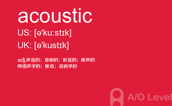 英国留学对于留学成绩的比拼越来越激烈,申请英国院校留学的一大指标a-level考试分数要求也水涨船高.虽然成绩只是申请的一部分,但不得不说,好看的英国a-level成绩是学生是否优秀的证据。放松一下跟着a/o-level考试网来学习一下a-level考试词汇acoustic的应用。如果您想了解上海alevel培训学校,澳大利亚alevel,alevel报名截止日期,爱德思alevel考试时间等关于a-level考试的相关资讯,请继续浏览并关注课窝a/o-level考试网。