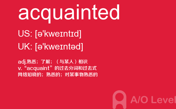 英国留学对于留学成绩的比拼越来越激烈,申请英国院校留学的一大指标a-level考试分数要求也水涨船高.虽然成绩只是申请的一部分,但不得不说,好看的英国a-level成绩是学生是否优秀的证据。放松一下跟着a/o-level考试网来学习一下a-level考试词汇acquainted的应用。如果您想了解alevel考试登记,alevel经济教材是哪个,alevel机构,alevel物理难吗等关于a-level考试的相关资讯,请继续浏览并关注课窝a/o-level考试网。