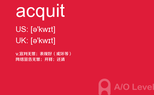 a-level考试报名须知是必须要懂得,这样在面对英国a-level入学考试的时候自己也知道应该怎么面对。为了提高考生们的a-level模拟考卷成绩,a/o-level考试网会经常给大家带来a-level考试资讯,下面就是今天课窝a/o-level考试网小编给大家讲解关于a-level考试词汇acquit怎么用。如果您想了解alevel学校什么时候招生,alevel数学词汇,alevel申请成绩,a水准报名时间地点费用等关于a-level考试的相关资讯,请继续浏览并关注课窝a/o-level考试网。