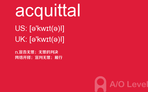 今天课窝a/o-level考试网小编给大家带来alevel考试至关重要的内容a-level单词acquittal的详细介绍。希望大家能够认真的阅读,在备考a-level中会用到,关于a-level考试时间,alevel考试费用等相关问题,可以关注课窝a/o-level考试网。如果您想了解英国alevel好学吗,爱德思alevel官网,怎么学新加坡a水准,alevel课程是什么等关于a-level考试的相关资讯,请继续浏览并关注课窝a/o-level考试网。