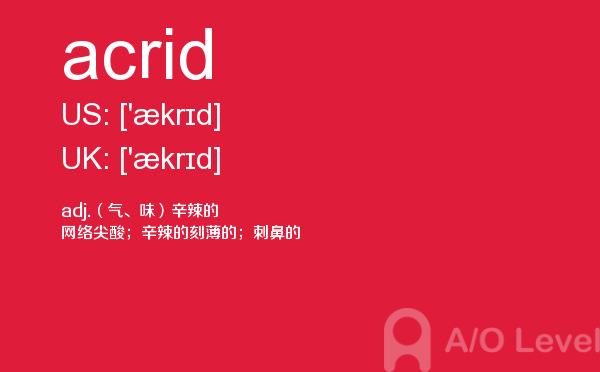 英国a-level入学考试的机会真的很少,每年就5-6月和10-11月两场考试。所以千万别因为不必要的原因,影响了a-level入学考试。为了让大家更好的在英国留学,a/o-level考试网会为大家带来a-level考试相关的资讯,一起来看看a/o-level考试网今天带来的词汇acrid的解析。如果您想了解alevel生物难度,英国alevel排名,alevel考试考点,申请英国alevel高中等关于a-level考试的相关资讯,请继续浏览并关注课窝a/o-level考试网。