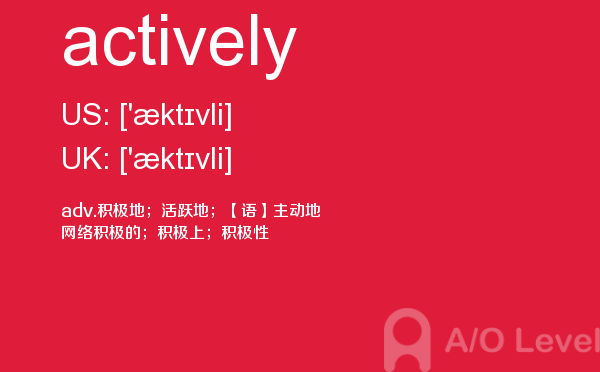 英国高中课程(a-level)的学制为两年:第一年称为as水准,学生通常选择自己最擅长且最有兴趣的3—4门课,通过考试后获得as证书。第二年称为a2水准,学生可选择as水准中优秀的3门课继续学习,通过考试后获得a-level证书。关于a-level学制相信大家肯定有一定的了解,今天alevel考试网想要带大家了解的并不是a-level学制的问题,想要介绍的是a-level重难点单词actively,希望对大家有帮助。如果您想了解alevel培训中心,英国alevel排名,alevel历年真题,alevel官方网站等关于a-level考试的相关资讯,请继续浏览并关注课窝a/o-level考试网。