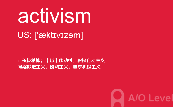 a-level 的考试将由所属的考试委员会分别于每年5-6月和10-11月在全球统一组织,成绩分别在8月和次年2月公布。关于a-level考试时间的具体内容,alevel考试网前面详细介绍过,大家可以查找alevel考试网前面的a-level考试资讯,alevel考试网每天会更新大量的alevel考试资讯,本篇要给大家介绍a-level单词activism的全面介绍。如果您想了解alevel有多难,新加坡a水准数学考试,alevel考试要求,alevel经济知识点等关于a-level考试的相关资讯,请继续浏览并关注课窝a/o-level考试网。