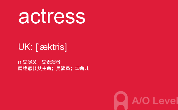 英国留学考试a-level考试考什么?a-level考试题型一定要注意积累和总结。课窝a/o-level考试网小编每天会给大家带来a-level考试的相关资讯,今天带来a-level单词actress的解析,希望大家认真的积累a-level考试词汇。如果您想了解alevel考试价格,alevel经济知识点,爱德思alevel2017真题,a水准一年等关于a-level考试的相关资讯,请继续浏览并关注课窝a/o-level考试网。