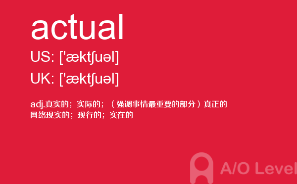 a- level课程一般在中国开设数学、进阶数学(或称高等数学)、物理、计算机学、会计学、商业学、经济学等课程供学生选择。那么关于alevel考生应该选哪些alevel课程呢?以后会给大家详细介绍,今天a/o-level考试网主要给大家全面介绍a-level词汇中的actual单词。如果您想了解alevel生物,alevel考试报名时间,考alevel多少钱,alevel阅读技巧等关于a-level考试的相关资讯,请继续浏览并关注课窝a/o-level考试网。