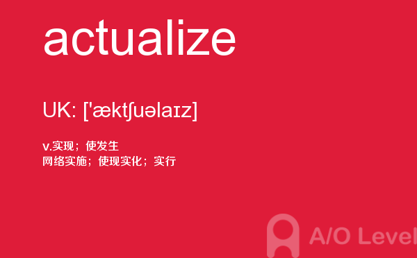 英国a-level考试是英国留学生去英国留学需要参加的考试,很多考生担心a-level考试分数要求高,英国a-level考试难度大,别担心,只要认真的学习a-level考试内容,小编相信大家一定能够考得a-level高分。今天a/o-level考试网给大家带来单词actualize的全面解析。如果您想了解alevel到底是什么课程,alevel考试要求,新加坡a水准好考吗,alevel网课等关于a-level考试的相关资讯,请继续浏览并关注课窝a/o-level考试网。