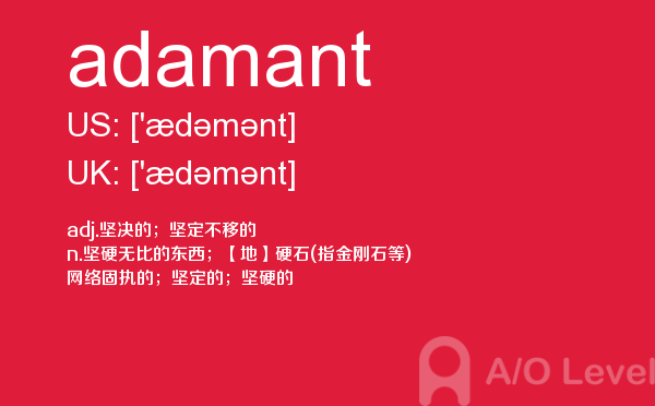 英国a-level学校,从教学质量上来看私立学校更占优势,大部分中国留学生也选择私立学校来读,不过一般都是提前一年来申请学校。中国目前也有20几所a-level学校,每年也同样有走进剑桥牛津等世界顶级大学的学生。所以在国外和在国内都可以选择a-level学校来学习。在前面关于a-level选校的问题已经详细介绍过,那么今天a/o-level考试网小编主要想介绍的是a-level重难点词汇adamant。希望对大家有帮助。如果您想了解墨尔本大学alevel,alevel笔记,alevel高频词汇,新加坡alevel等关于a-level考试的相关资讯,请继续浏览并关注课窝a/o-level考试网。
